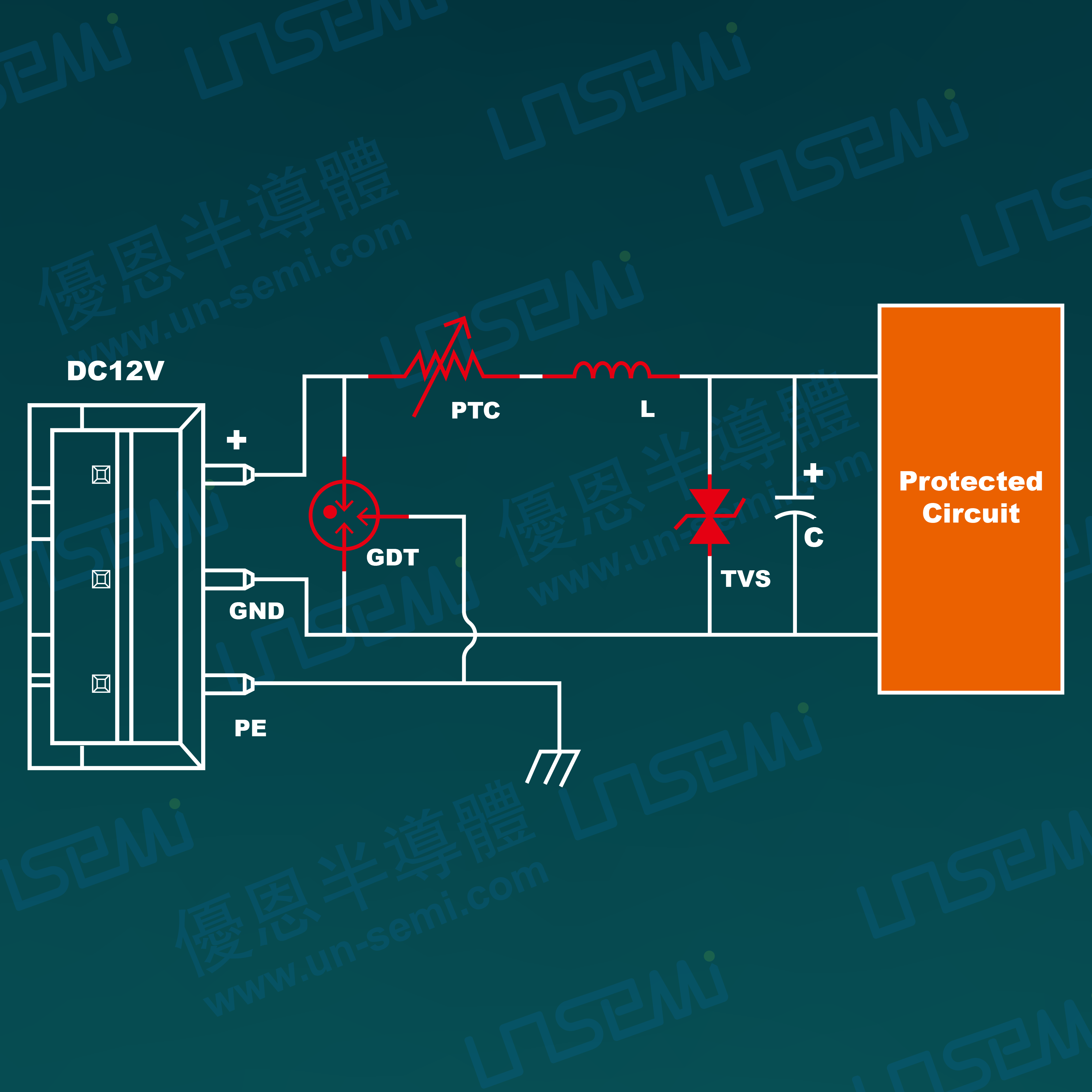 8、产品若涉及到绝缘耐压测试,可以通过提高GND对PE并接的陶瓷气体放电管的电压实现;